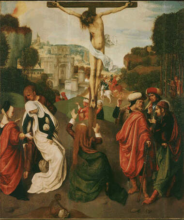 Scene 3: The Crucifixion. Geez, way to be morbid, guys. Jesus did a lot of excellent things while he was alive (kicking the money-changers out of the temple is my personal favourite), but in Renaissance art he's either a baby, or nailed up. It doesn't help that Mary Magdalene is too often making a scene around the base of the cross. As I mentioned back in 2003, you can tell Mary Mags because she doesn't have her hair covered (scandalous!).
